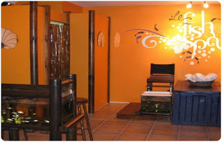 Ever since seeing that episode of Ugly Betty, where Wilhelmina gets a fish 'pedicure', I have wanted to try it. So I was pretty thrilled when my mum bought us a couple of groupons for a little fish therapy.